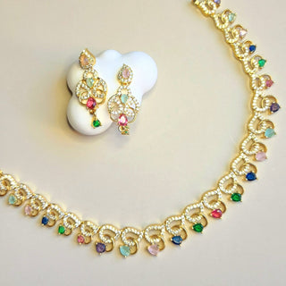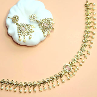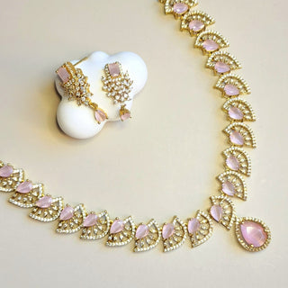 Pihu Pink CZ Diamond Simulant Necklace Set