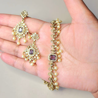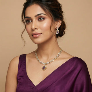 Pihu Purple CZ Diamond Simulant Necklace Set