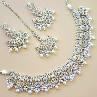 Naira White CZ Diamond Simulant Necklace Set