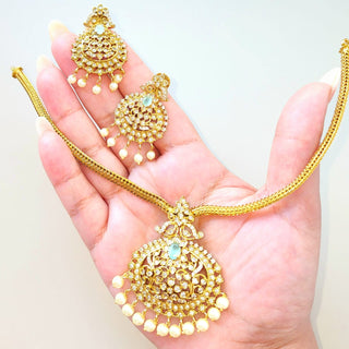 Naira Mint Green CZ Diamond Simulant Necklace Set