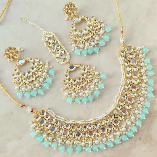 Sold out - Abigail Light Blue Uncut Kundan Necklace Set with Tikka+s9221985075517scollectionTemplatesp.priceRaw ? 'price price--on-sale' : 'price'">