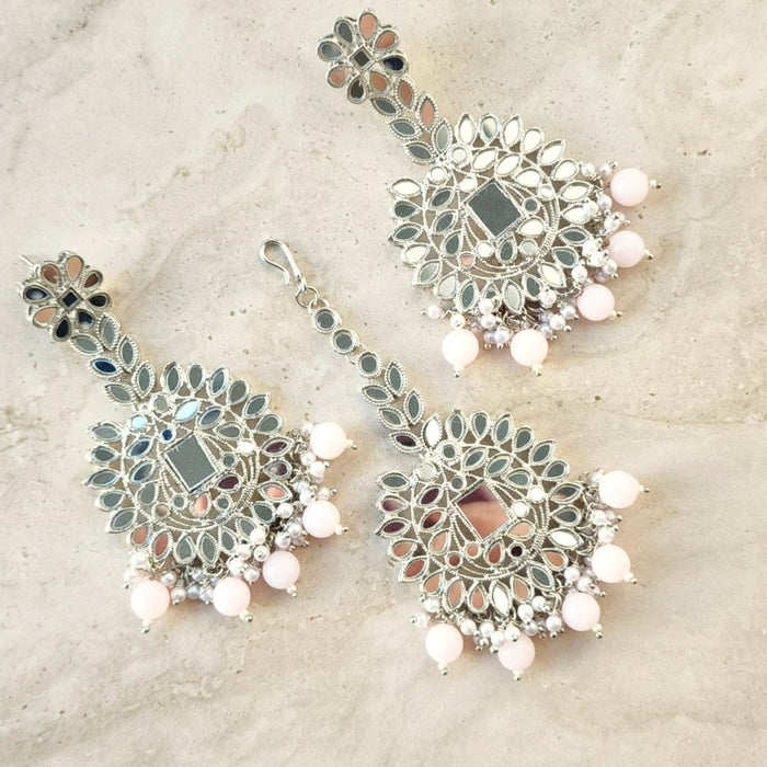 Eclat Indian Jewels presents an exquisite Maang Tikka Set with Matching Earrings that embodies traditional elegance with a modern twist. Each piece in this set is adorned with radiant mirrors set against a lustrous silver polish backdrop, creating an enchanting play of light with every turn. Delicate light pastel pink beads add a whimsical charm to the ensemble, perfect for complementing your festive and bridal attire. The statement earrings measure 8.4 cm in length, designed to cascade beautifully and draw attention to your visage with their graceful movement. This maang tikka and earring duo is not just jewellery; it’s a celebration of heritage craftsmanship tailored for the contemporary woman who cherishes her roots. 🌟