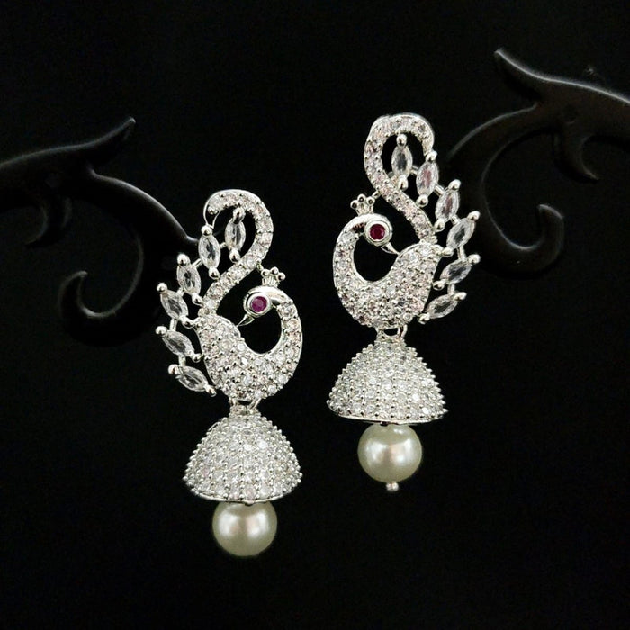 Elevate your style with our stunning white rhodium plated Jhumki, a true masterpiece measuring 4.8 cm. Crafted with precision and adorned with dazzling American diamonds, this jhumki is a testament to elegance and sophistication.