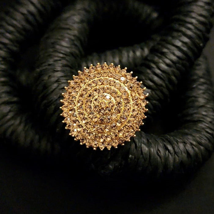 Embrace timeless elegance with this exquisite ring. Crafted to capture heritage, it features a mesmerizing central stone amidst layers of ornate detailing. The sunburst effect exudes sophistication, while the oxidized finish adds depth and character. More than just jewelry, it’s a statement of grace and grandeur.