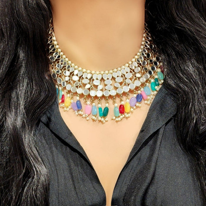 Rosalie Multicolour Mirror Necklace Set with Maang Tikka