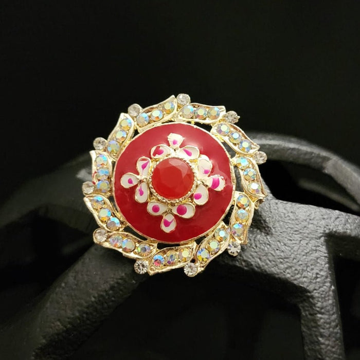 The adjustable band ensures a comfortable and custom fit for any wearer, making it a versatile accessory for any occasion. Whether paired with ethnic wear for weddings or festive celebrations, or worn as a statement piece with casual outfits, this ring is designed to turn heads and add a touch of glamour to your look.