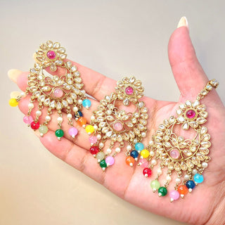 Alisha Light Pink Polki Choker Necklace Set with Tikka & Passa