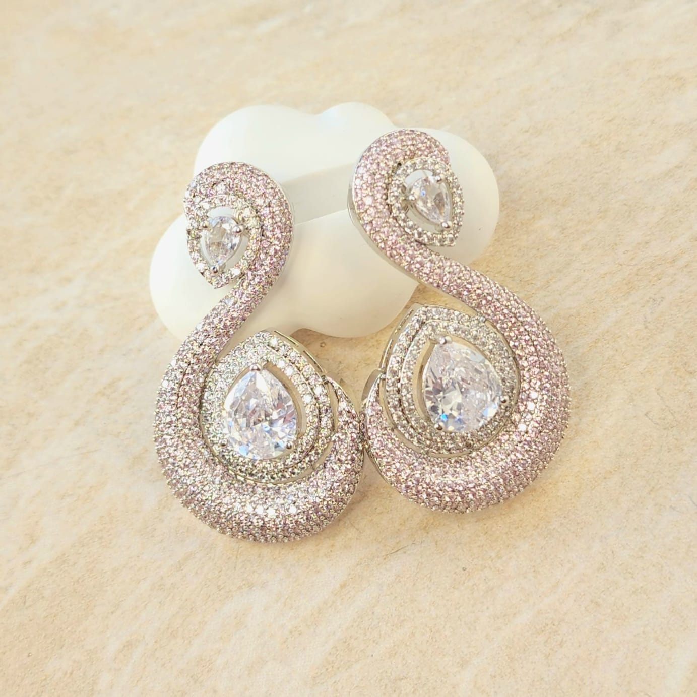 A graceful paisley‑inspired silhouette cradles the sparkling centre stones, while intricate detailing and a seamless finish ensure they dazzle from every angle. Designed for those who appreciate statement jewellery that speaks of refinement, these earrings transition effortlessly from grand festive occasions to black‑tie evenings.