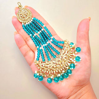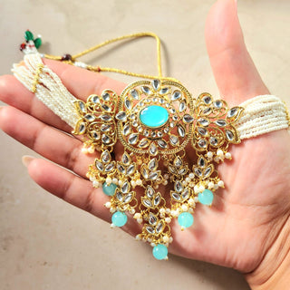 Alisha Teal Blue Polki Choker Necklace Set with Tikka & Passa