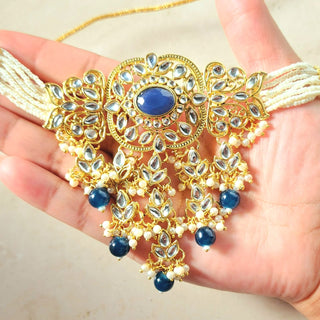 Isha Blue Kundan Choker Necklace Set with Tikka