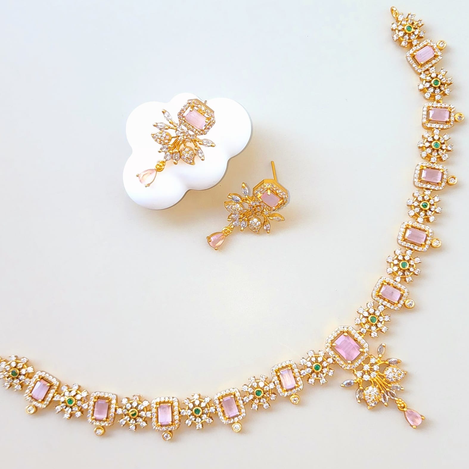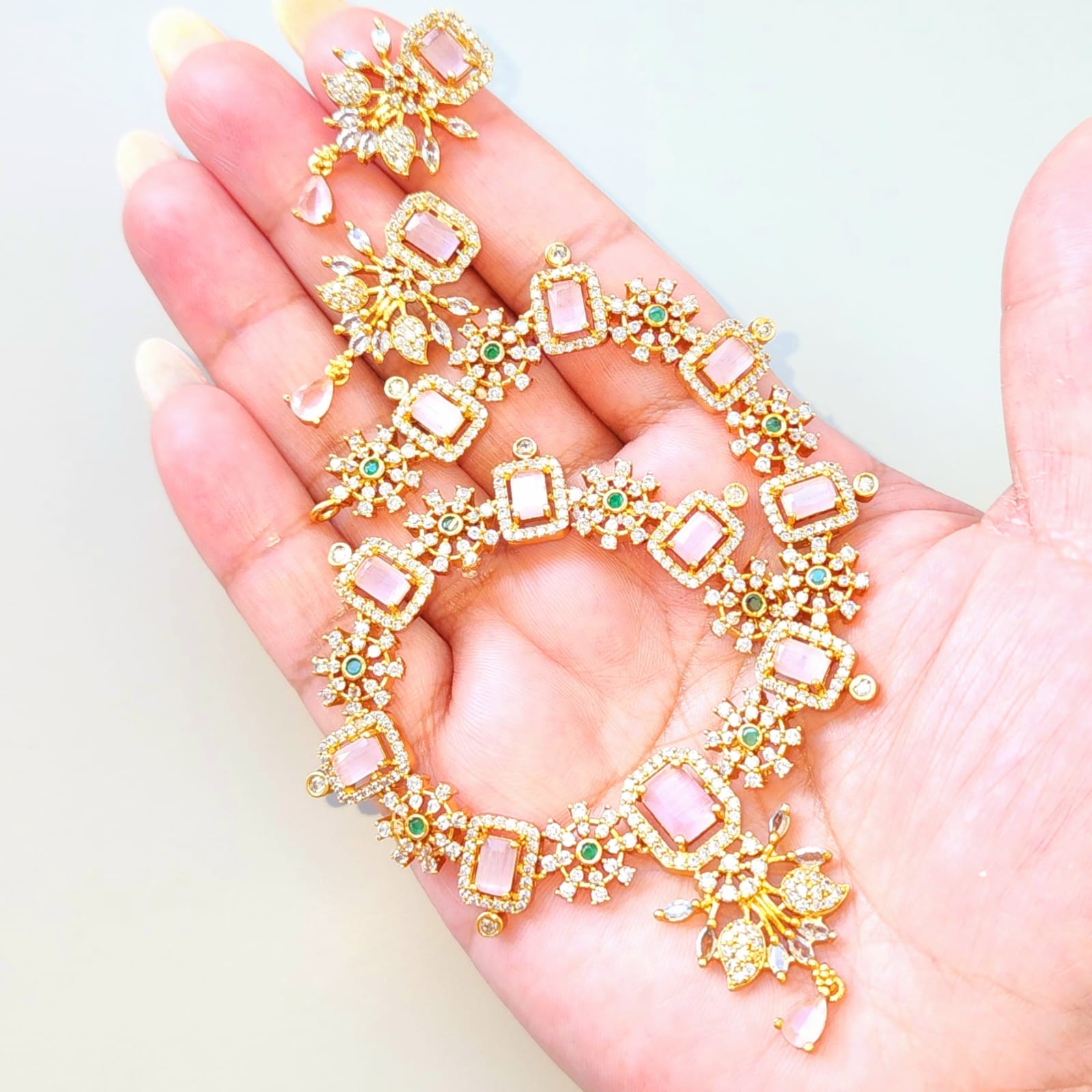 Inaya Pink CZ Diamond Simulant Necklace Set