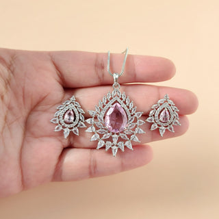 Sadie Light Pink CZ Simulant Pendant Set (Chain included)