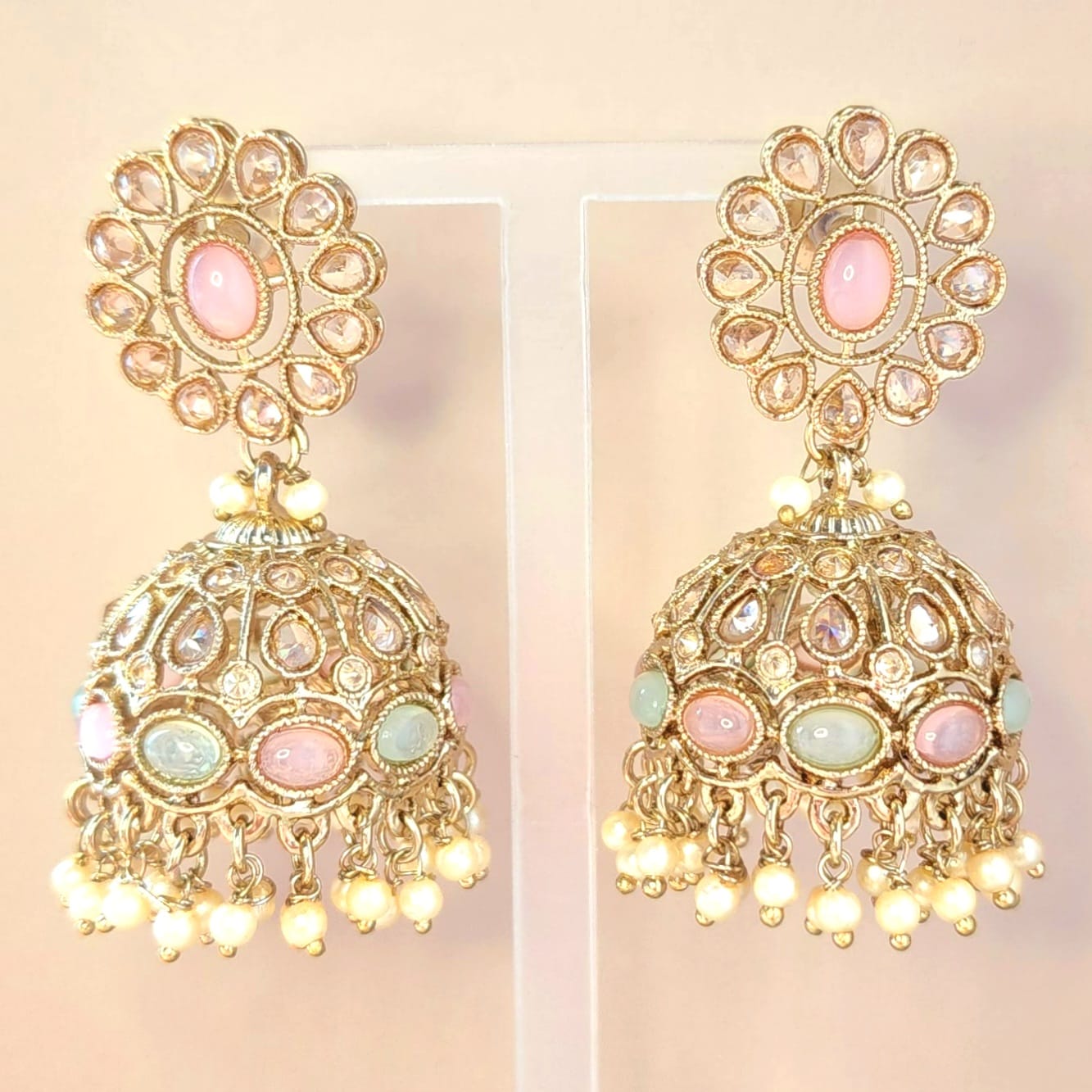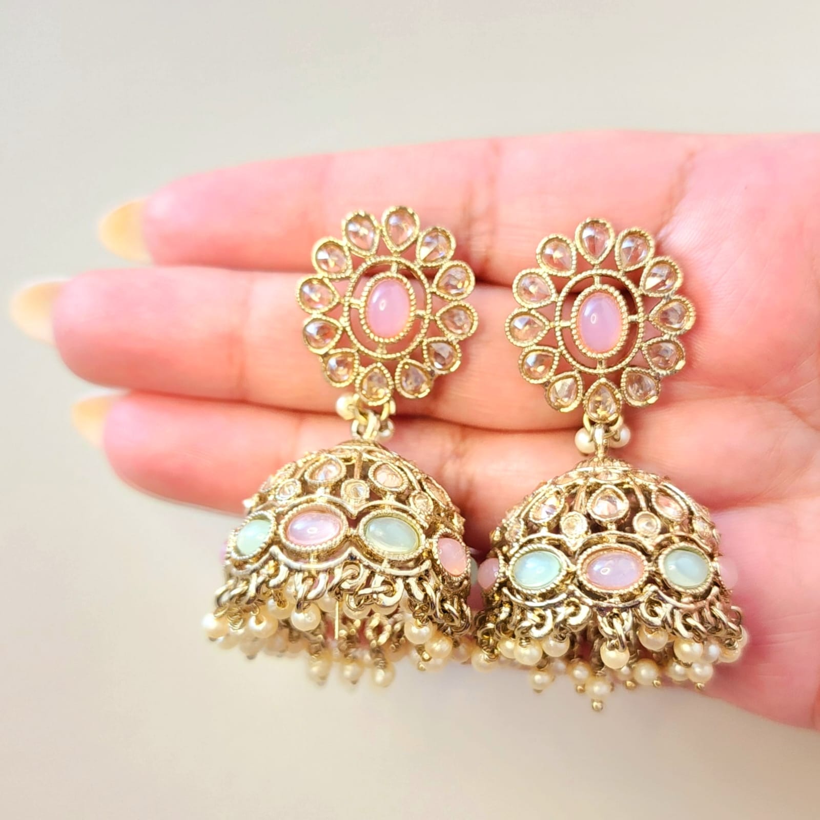 🌸 Pastel Reverie: Polki Jhumka Earrings (5.7 cm)