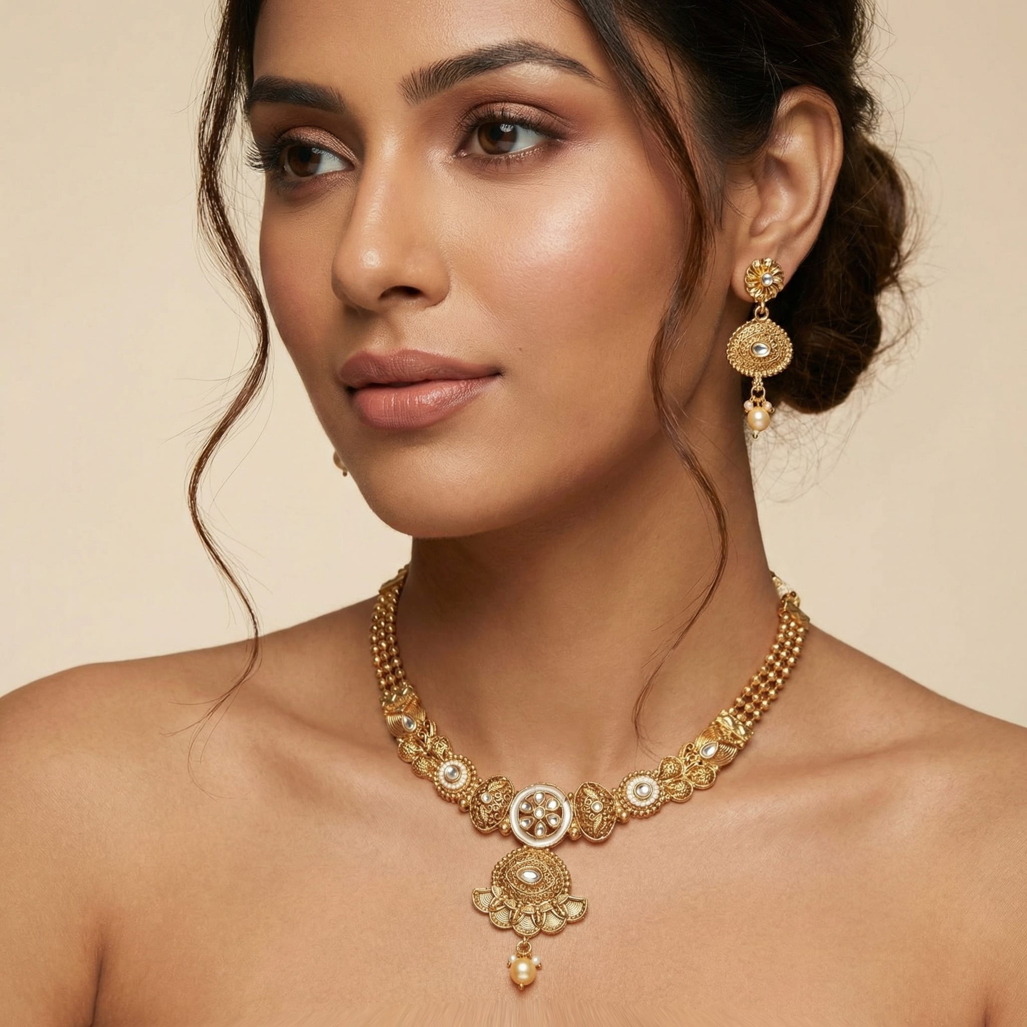 Jacie White Kemp Rajwadi 20k Gold Plated Necklace Set