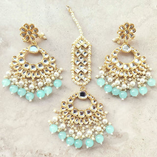 Becca Light Blue Kundan Necklace Set with Tikka