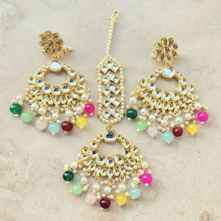 Abigail Multicolour Uncut Kundan Necklace Set with Tikka