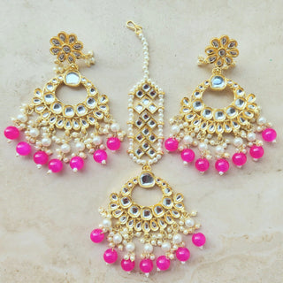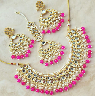 Madison Pink Kundan Necklace Set with Tikka