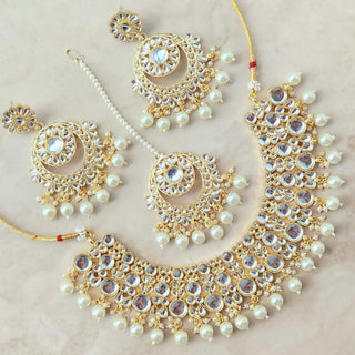 Vanessa Kundan White Necklace Set with Tikka