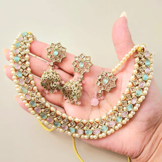 Camila Pink Gold Plated Diamond Simulant Necklace Set