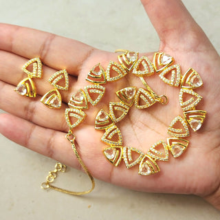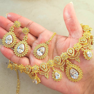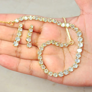 Ramona Green Gold Finish Diamond Simulant Necklace Set