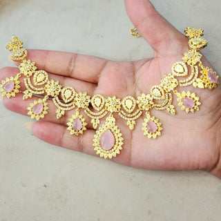 Ramona Pink Gold Finish Diamond Simulant Necklace Set