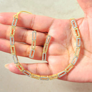 Riley Gold Dual Toned Diamond Simulant Necklace Set