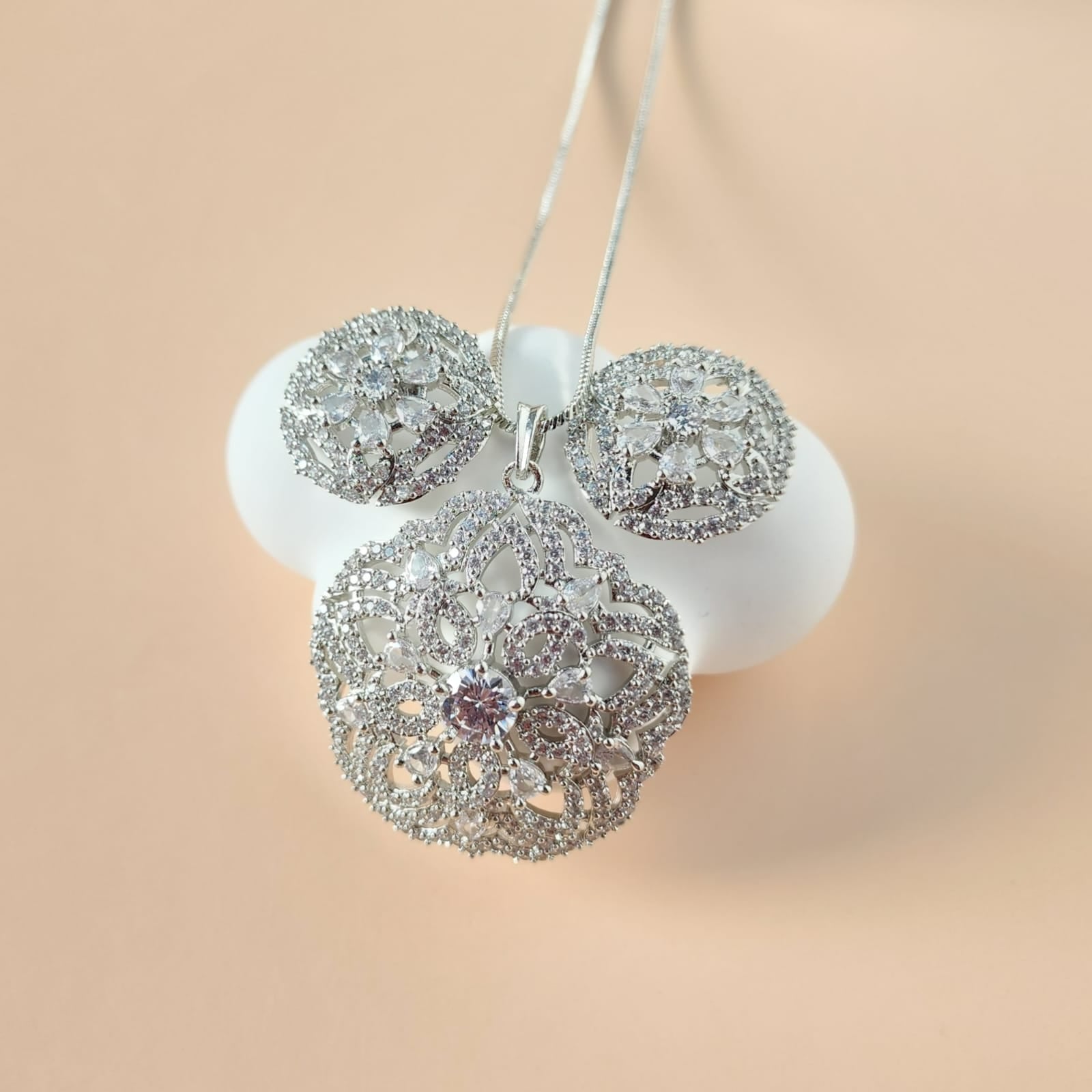 White Mirage: Pendant Set with Chain & Matching Earrings (2 cm)