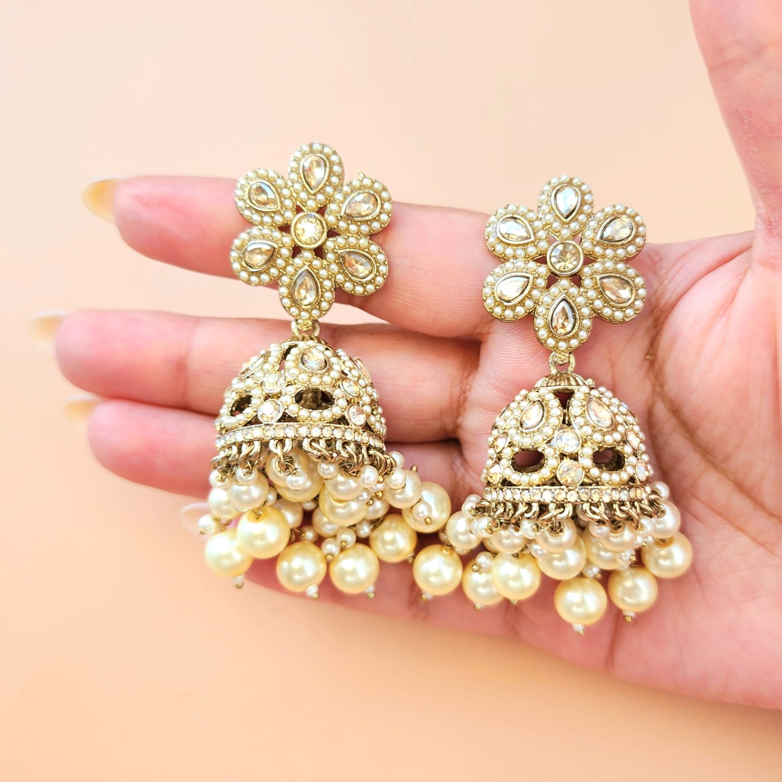 🤍 Royal Whisper: Polki Jhumka Earrings (7.5 cm)