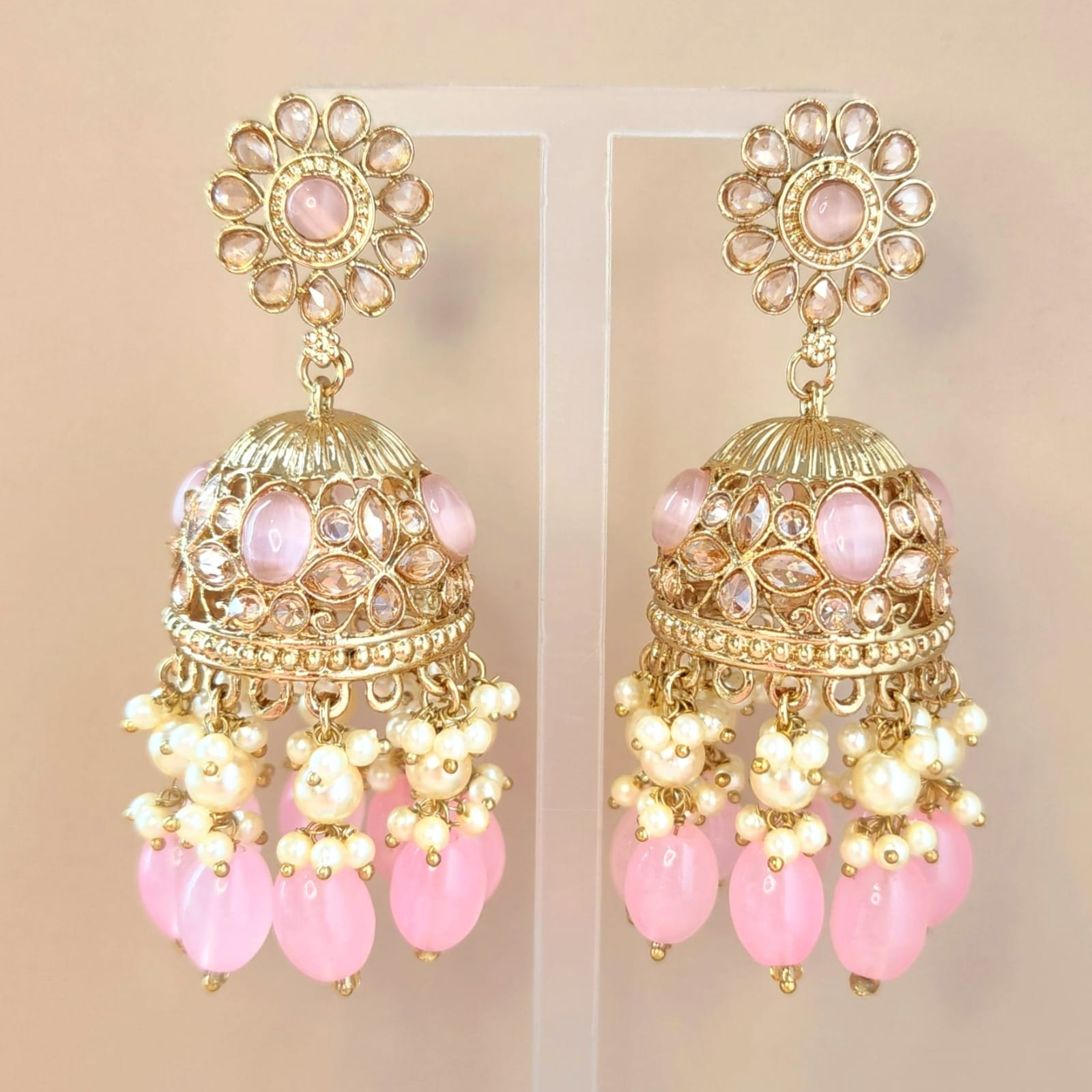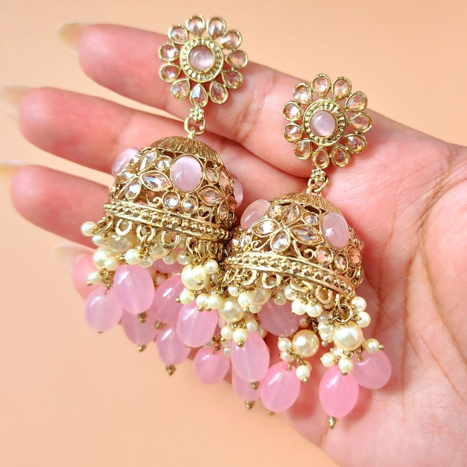 🌺 Rosé Majesty: Polki Jhumka Earrings (8 cm)