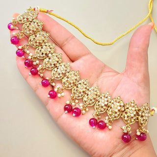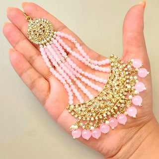 Alisha Light Pink Polki Choker Necklace Set with Tikka & Passa
