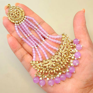 Alisha Light Purple Polki Choker Necklace Set with Tikka & Passa