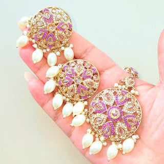 Alisha Purple Polki Choker Necklace Set with Tikka & Passa
