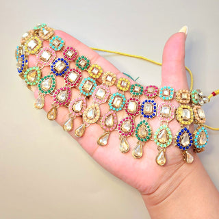 Alisha Teal Blue Polki Choker Necklace Set with Tikka & Passa