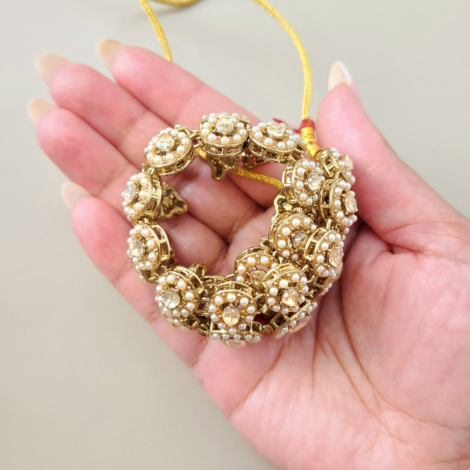 Celebrate the art of adornment with our Zeenat Polki Ensemble, a luxurious three-piece set that brings timeless tradition to life. This regal collection includes a statement necklace, matching earrings, and a coordinating maang tikka—each piece designed to reflect the grandeur of Indian heritage with a contemporary twist.