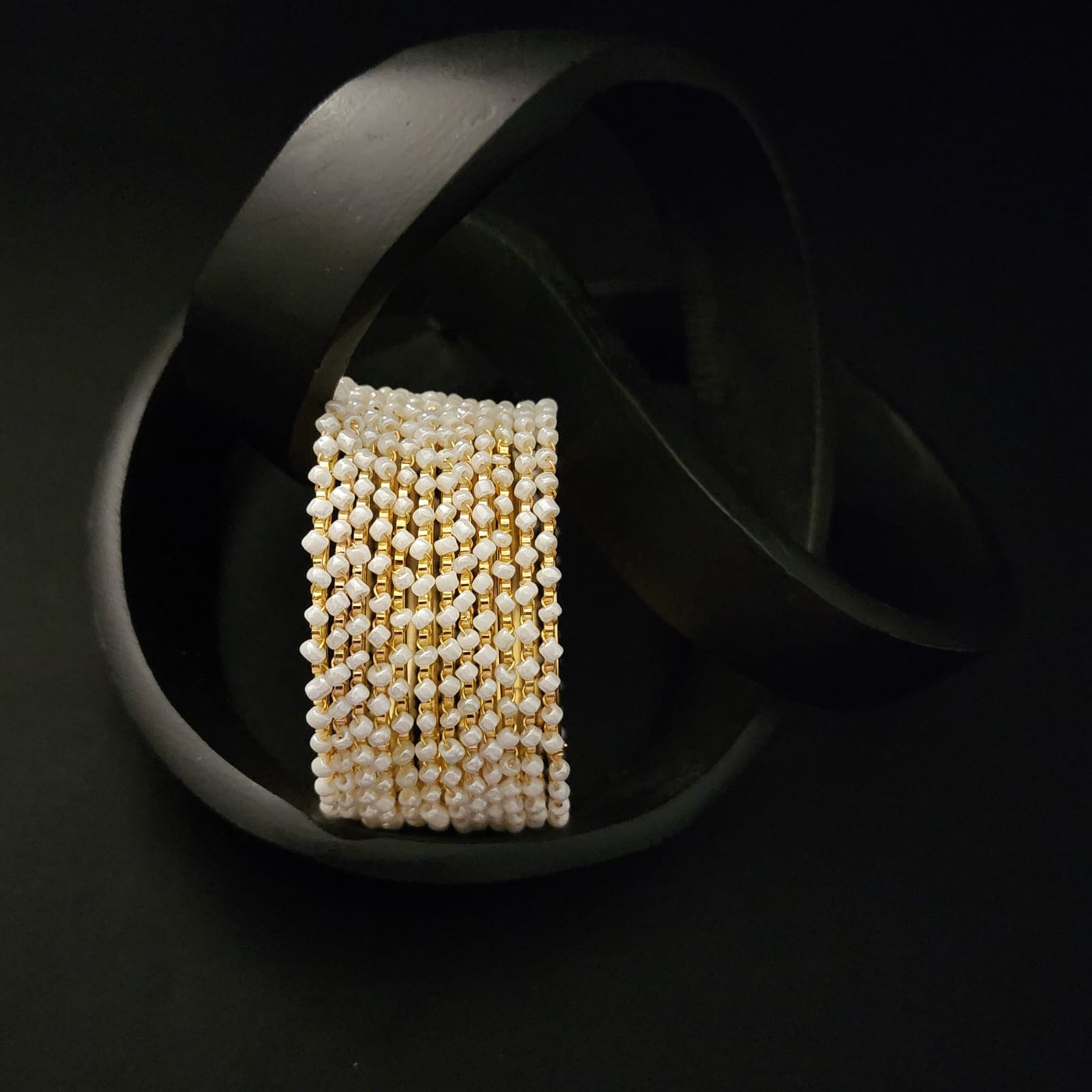 Elevate your ensemble with this exquisite set of 10 bangles, masterfully crafted to embody timeless grace and modern allure. Each bangle gleams in a rich gold finish, adorned with meticulously set sparkling beads that catch the light with every movement. The symmetrical design and intricate detailing reflect the finesse of traditional Indian artistry, reinterpreted for today’s discerning wearer.