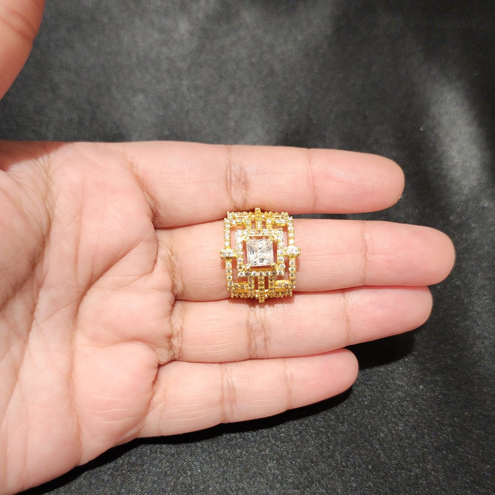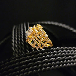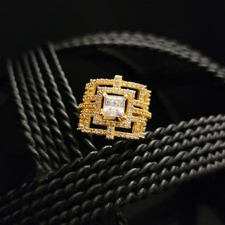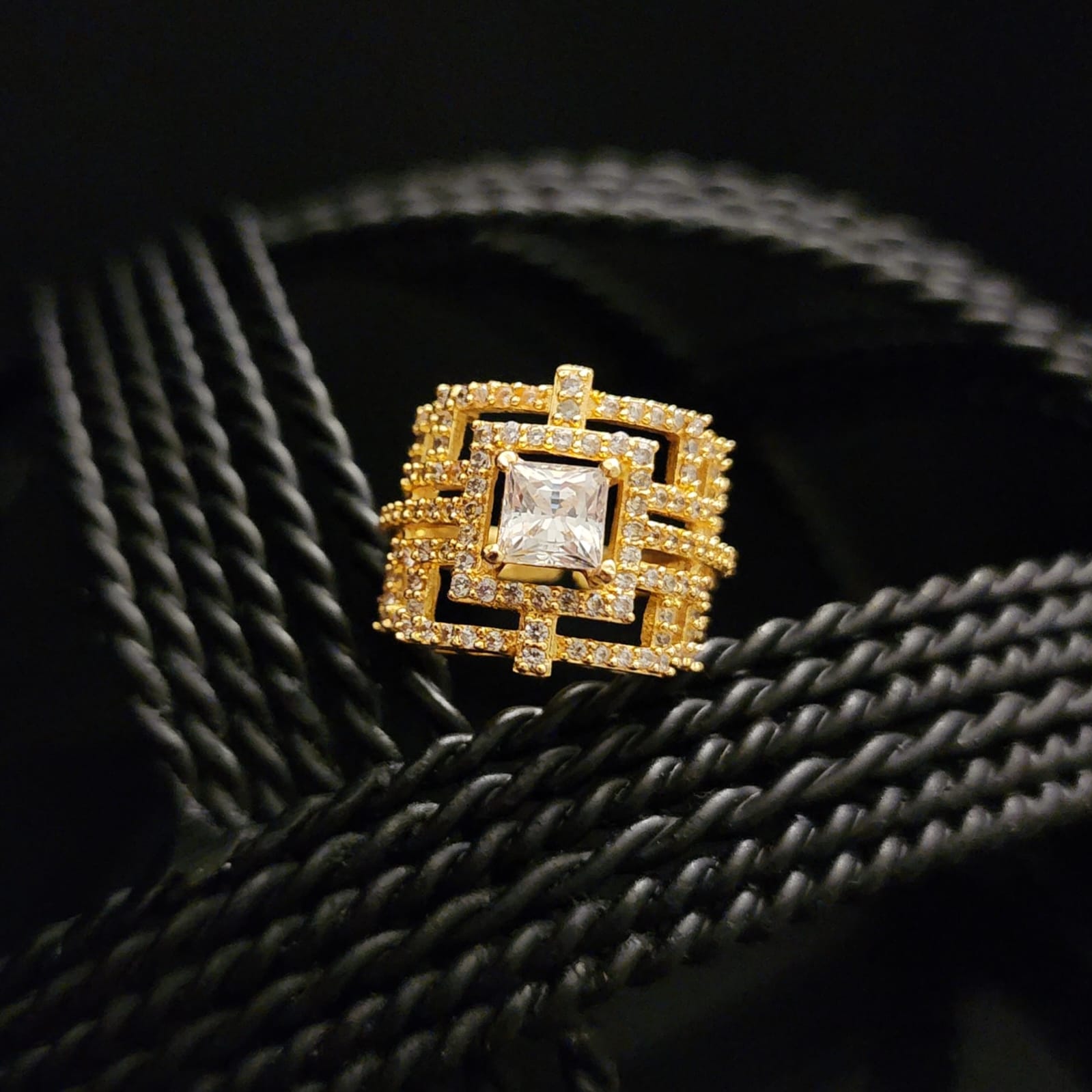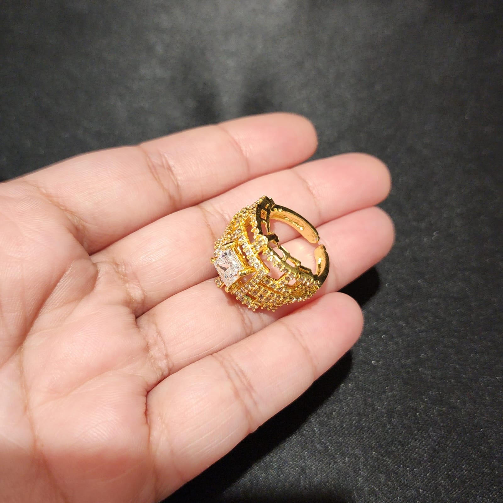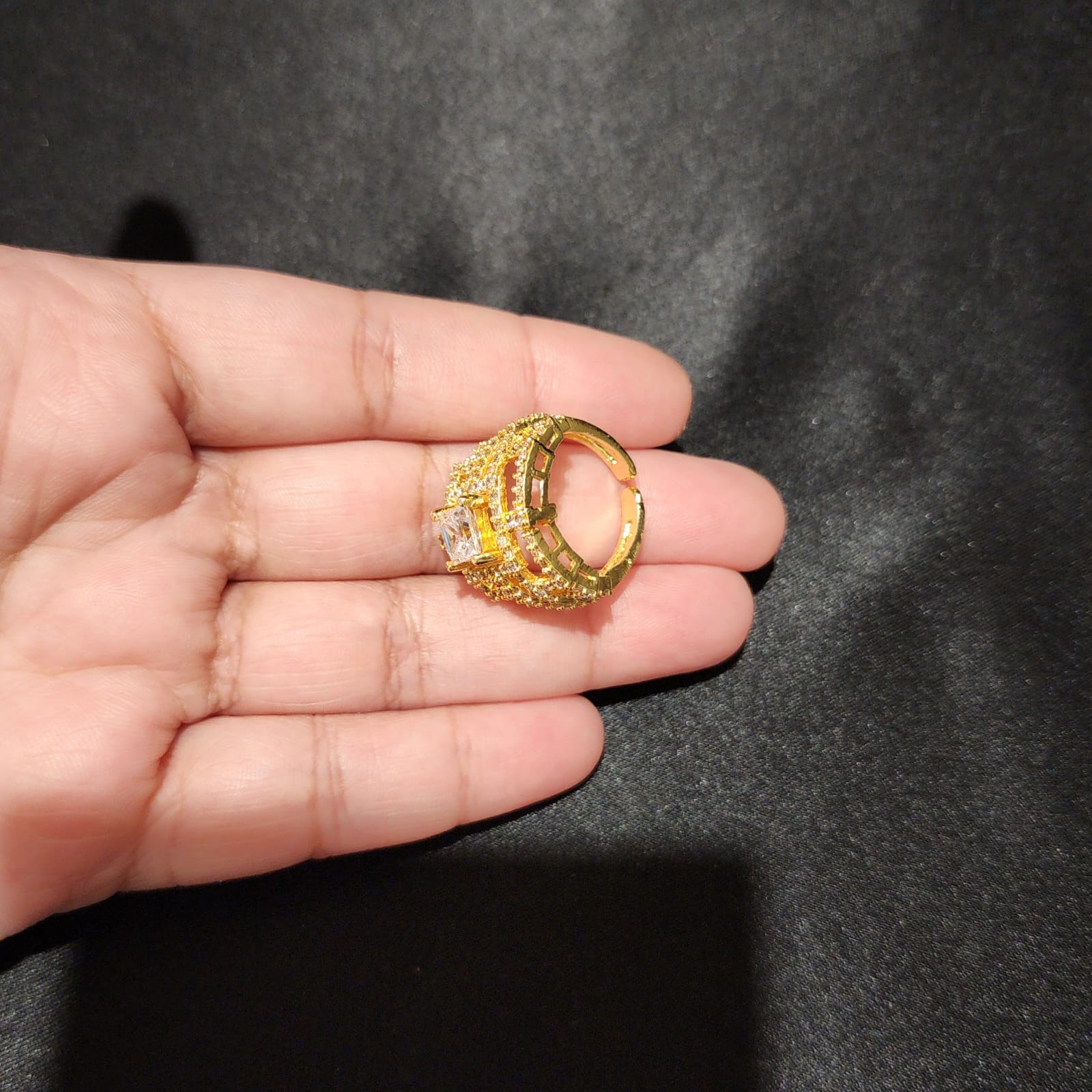Gold Diamond Simulant Adjustable Ring - Eclat Indian Jewels