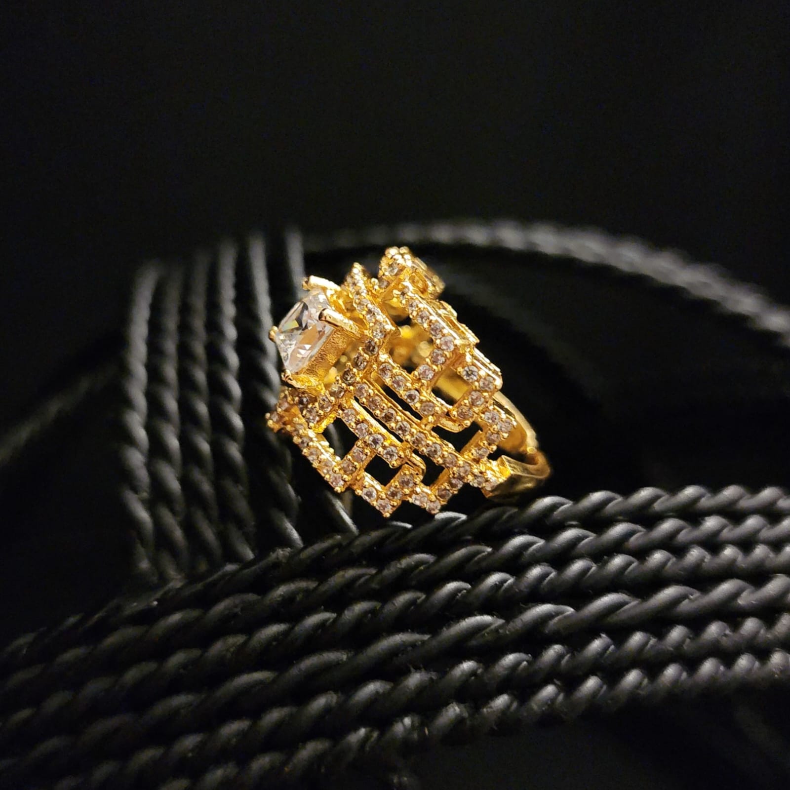 Perfect for weddings, festive occasions, or to add a touch of glamour to your everyday attire, this ring is a versatile piece that complements both traditional and modern outfits. Its adjustable design ensures a comfortable fit for any finger size.